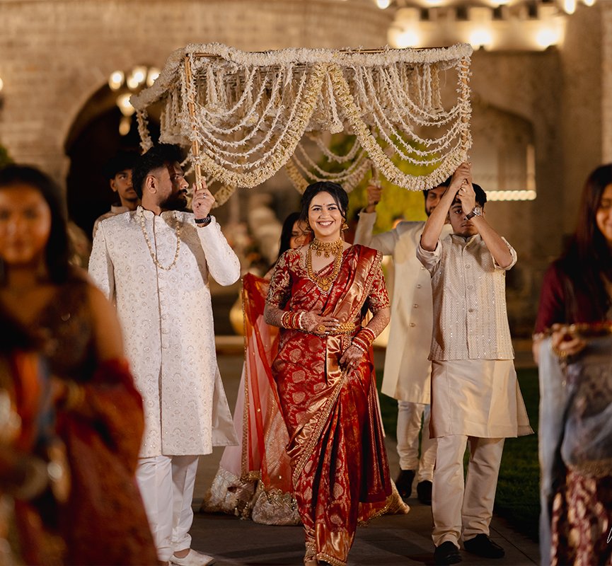 Every city holds hidden backdrops perfect for rishtedaar selfies and family portraits. As wedding photographers near me, we know where light, laughter, and rituals come alive. From ‘O didi, kya keh ke unko bulaoge’ teasing by cousins to mandap rituals, nothing escapes our lens. We adapt to traditions, whether it’s the simplicity of South Indian traditions or the extravagant baraats of North India. Our professional wedding photographers in Jaipur have covered 500+ weddings across metros and dreamy destinations.